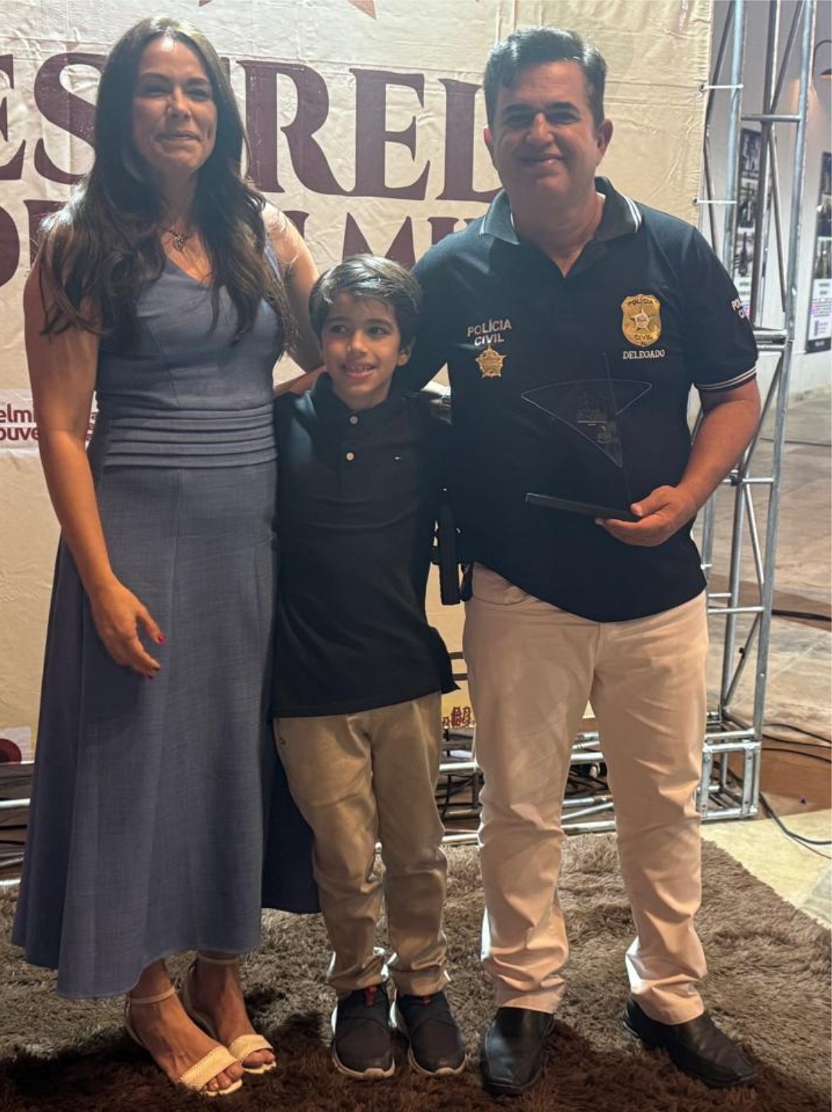 O delegado de Polícia Rodrigo Cavalcanti recebeu o Prêmio Estrela de Delmiro em reconhecimento aos relevantes serviços prestados à segurança pública na comunidade local. A premiação aconteceu na quinta-feira, dia 9, durante um evento reservado para homenageados e familiares, integrando a programação da Semana Cultural Viva Delmiro Gouveia 2025.